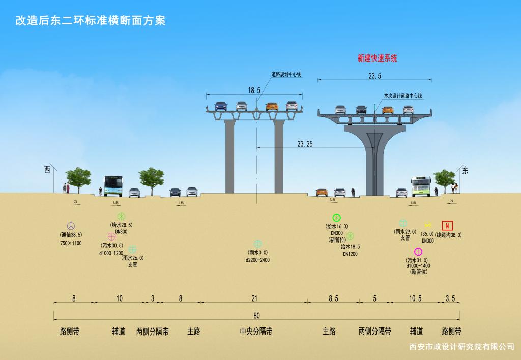 本次設(shè)計(jì)的南二環(huán)-東二環(huán)整體改造方案,由西二環(huán)昆明路立交至東北二環(huán)立交,全長(zhǎng)約18.3km,含昆明路、太白路、太乙路、東南二環(huán)、咸寧路、東快速干道、東北二環(huán)以及西影路與西延路8處立交改造;建工路-新興南路快速路建設(shè)方案,由建工路東南二環(huán)立交至新興南路三環(huán)立交,全長(zhǎng)約6km,含東南二環(huán)、萬(wàn)壽路、幸福路、新興南路與長(zhǎng)鳴路、田馬路、東三環(huán)立交的建設(shè)和改造。