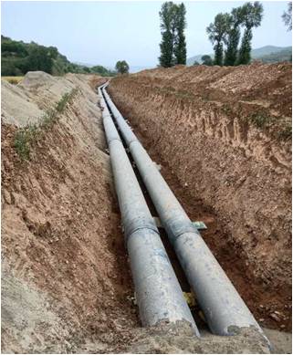 該工程供熱管線總長度23.4km,供熱管道最大管徑D720×10mm。設(shè)計采用了國內(nèi)領(lǐng)先的無補償冷安裝直埋敷設(shè)技術(shù),是目前全國首例跨省輸送的集中供熱工程,也是全國范圍內(nèi)輸送距離最長的集中供熱工程之一。