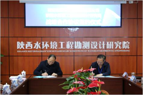 11月24日上午,我公司與陜西水環(huán)境工程勘測(cè)設(shè)計(jì)研究院戰(zhàn)略合作協(xié)議簽約儀式在陜西水環(huán)境設(shè)計(jì)院八樓會(huì)議室舉行。公司董事長(zhǎng)兼總經(jīng)理高中俊、副總經(jīng)理王社平以及相關(guān)部門負(fù)責(zé)人、陜西水環(huán)境設(shè)計(jì)院院長(zhǎng)張潤(rùn)平、副院長(zhǎng)黃永成、李均安、余金龍、張志強(qiáng)以及相關(guān)部門負(fù)責(zé)人等參加簽約儀式,共同見(jiàn)證這一重要時(shí)刻。