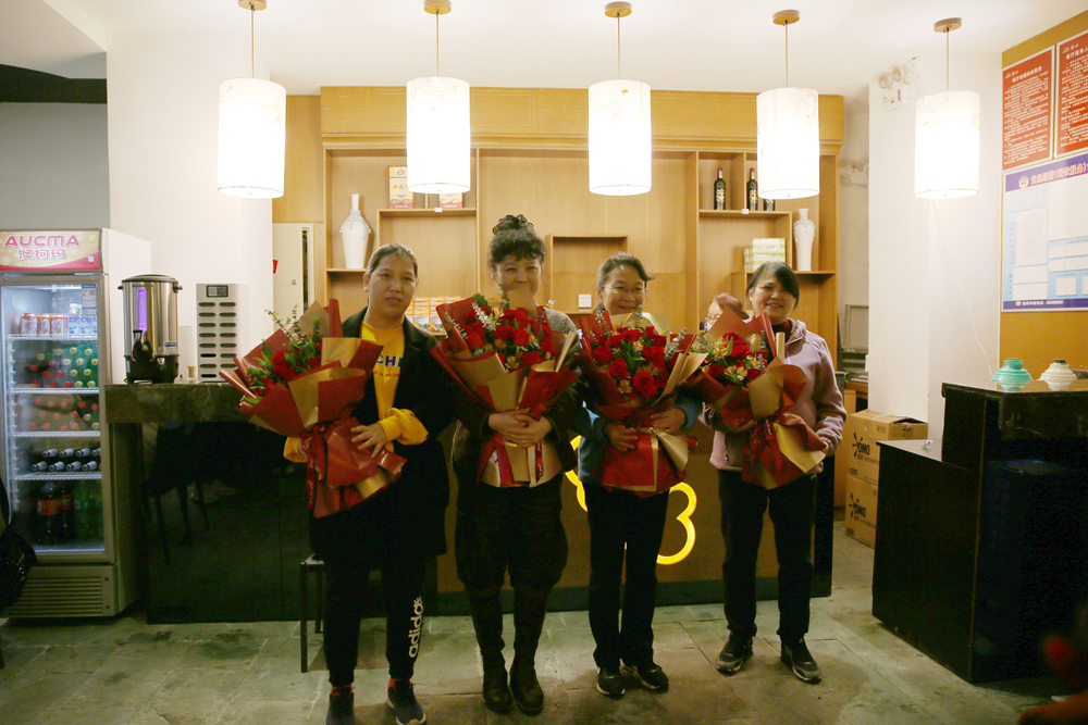 為感謝廣大女員工為公司發(fā)展做出的突出貢獻(xiàn),午餐期間,劉副書(shū)記代表領(lǐng)導(dǎo)班子帶領(lǐng)現(xiàn)場(chǎng)男同胞,為4名女員工代表獻(xiàn)上了鮮花與祝福,并感謝公司廣大女員工能夠積極協(xié)調(diào)好工作與生活的關(guān)系,以飽滿的熱情投入到公司各項(xiàng)工作中,用自己的行動(dòng)展現(xiàn)了別樣風(fēng)采,為公司的發(fā)展做出了應(yīng)有的貢獻(xiàn),希望大家今后能繼續(xù)發(fā)揚(yáng)公司女員工“自尊、自愛(ài)、自立、自強(qiáng)”的巾幗精神,以主人翁的責(zé)任感,敬業(yè)求實(shí)、協(xié)作創(chuàng)新,為公司美好明天做出更大貢獻(xiàn)!