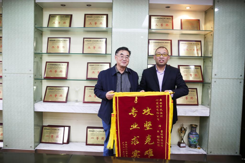 5月18日下午,西安珠江投資有限公司設計部副部長富博蒞臨我公司,將一面寫有“攻堅克難 專業(yè)求實”的錦旗送到我公司副總經理王社平的手中,以感謝“西安珠江新城項目三期規(guī)劃路過街管溝工程”項目設計組成員的精心設計、優(yōu)質服務和辛苦付出,并表達了雙方開展更深層次合作的期望。