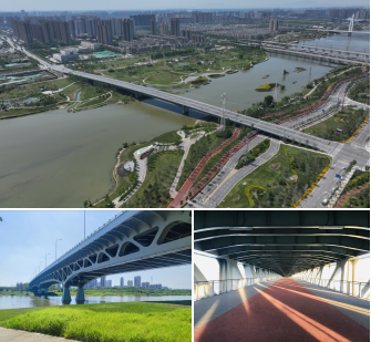 橋梁設(shè)計方案在滿足功能需求的基礎(chǔ)上,運(yùn)用大地藝術(shù)景觀手法,結(jié)合橋下濕地公園及河道的天然資源,縱橫向采用曲線變截面,最大限度展現(xiàn)景觀設(shè)計;采用變高雙層鋼桁連續(xù)梁橋型,外觀如蛟龍般屹立于灞河之上,氣勢雄偉,與橋下景觀公園交相呼應(yīng),共同構(gòu)成了城市的新風(fēng)景。