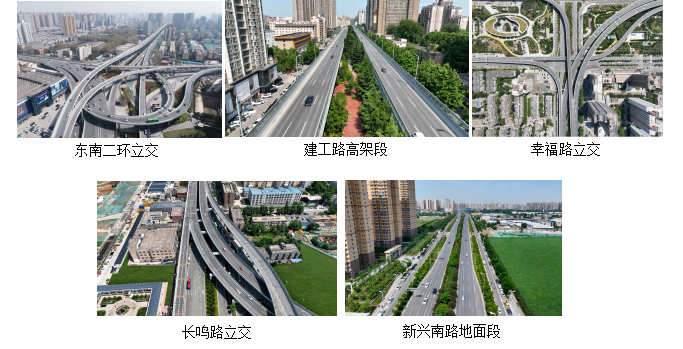 西安市新興南路工程PPP項目,是西安市快速路系統(tǒng)中一條重要的東西向城市快速路,西起南二環(huán)興慶橋,途經(jīng)南二環(huán)、建工路、幸福南路、長鳴路、新興南路,東至東三環(huán),道路全長約7.84km,總投資17.59億元,包括東南二環(huán)立交、建工路高架段、幸福路立交、長鳴路立交、新興南路地面段五部分,車行道面積36.4萬㎡,橋梁面積12.2萬㎡,雨、污水管道14496m。采用高架-地面雙系統(tǒng),配合車道設(shè)置立交節(jié)點(diǎn)解決不同層次的交通需求和轉(zhuǎn)換。