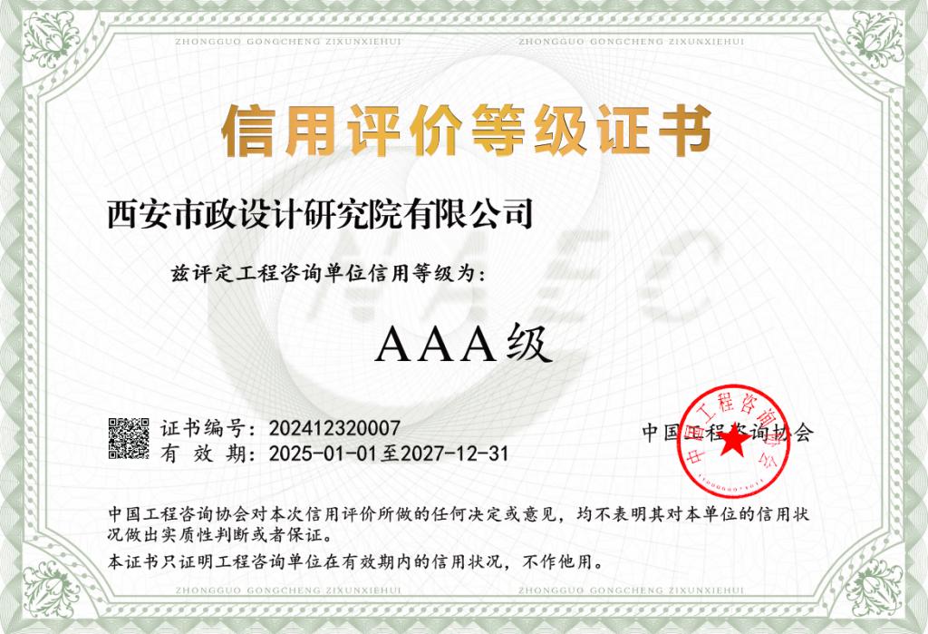 近日,中國工程咨詢協(xié)會公布了2024年工程咨詢單位信用評價結(jié)果,我公司榮獲工程咨詢單位信用評價最高等級“AAA”級。