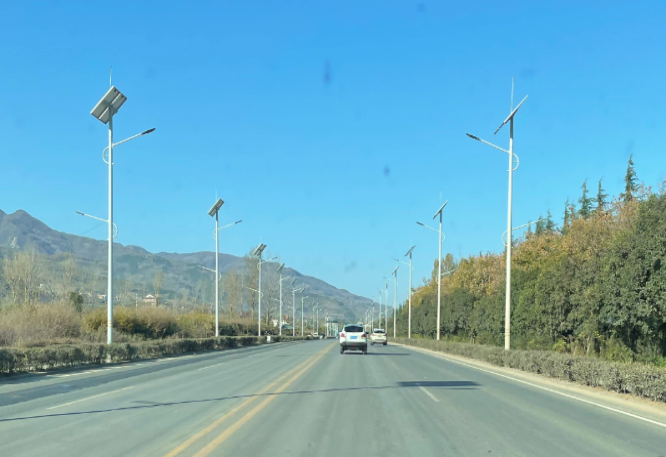 秦嶺北麓省道107公路太陽能光伏LED路燈亮化項目,分兩期推進實施,覆蓋路段道路寬28m,雙向四車道,設(shè)計車速80km/h。該路段曾因車速較快、沿線開口較多,長期存在交通安全隱患。為破解這一難題,同時兼顧秦嶺北麓生態(tài)保護與旅游發(fā)展雙重需求,我公司量身打造了一套集節(jié)能、智能、生態(tài)于一體的太陽能光伏LED亮化系統(tǒng)。