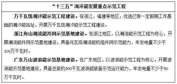 規(guī)劃提出五大重點(diǎn)任務(wù),一是推進(jìn)海洋可再生能源工程化應(yīng)用;二是積極利用海島可再生能源;三是實(shí)施海洋可再生能源科技創(chuàng)新;四是夯實(shí)海洋能發(fā)展基礎(chǔ);五是加強(qiáng)海洋可再生能源開(kāi)放合作。